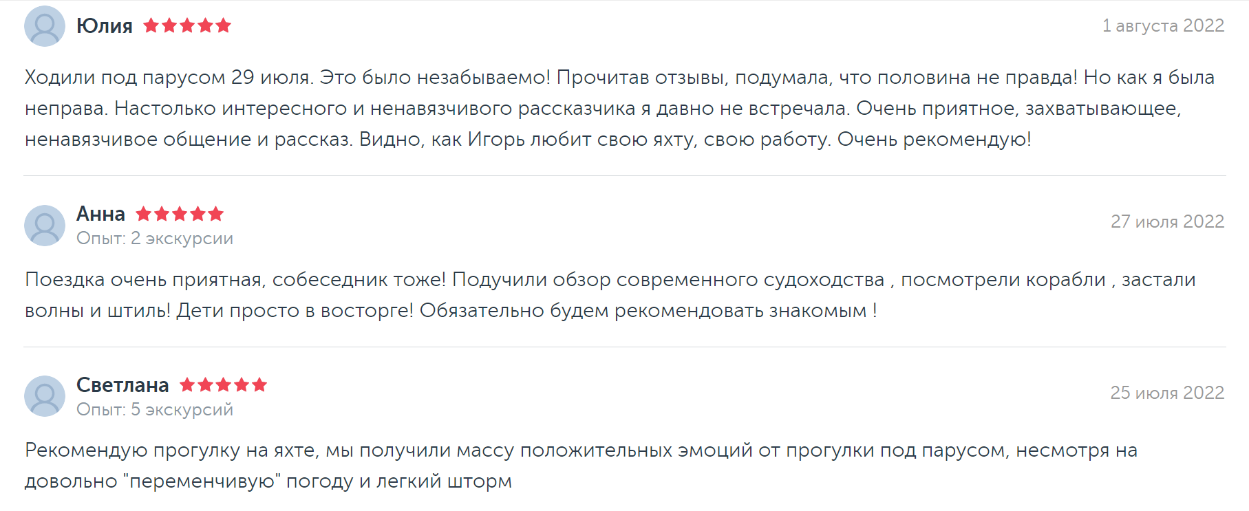 Условия прогулки на яхте